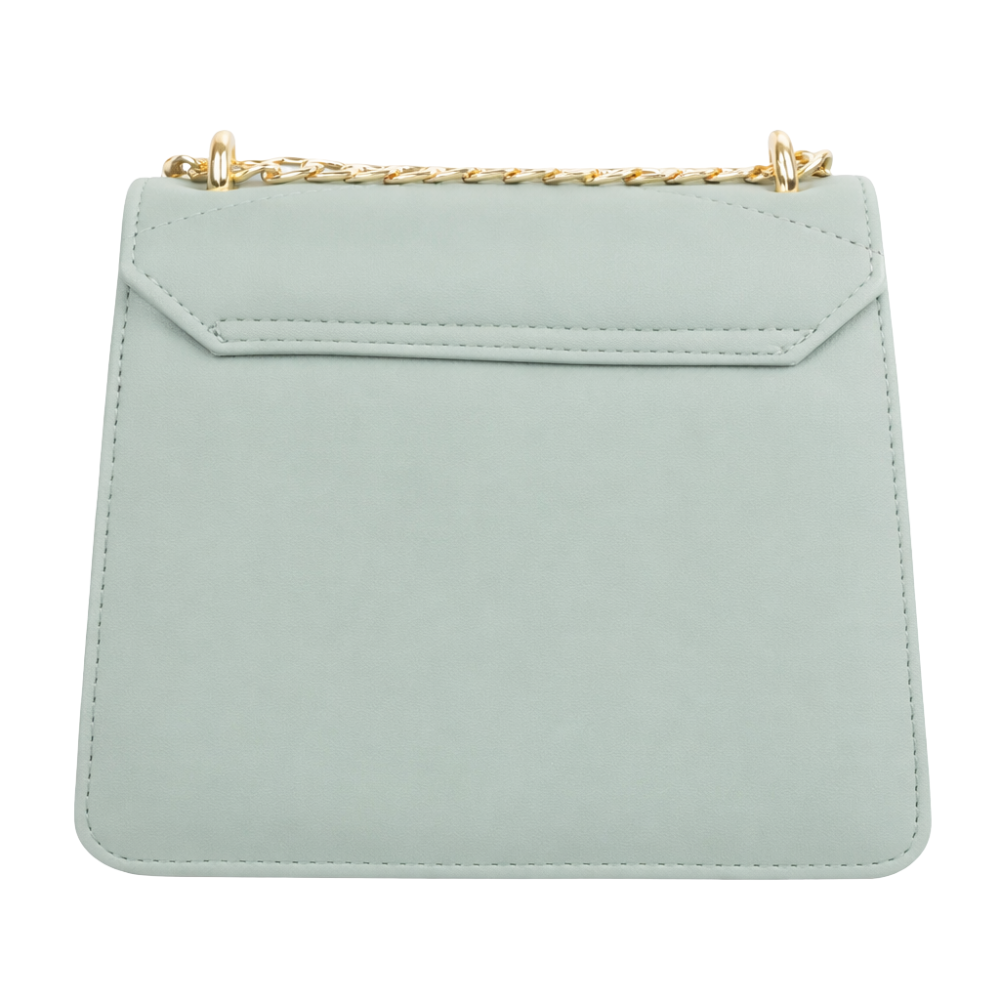 The handbag features a magnetic fastening for secure and convenient access. Inside, it includes one main open compartment and a small zip pocket to keep essential items organised. A gold-tone metal chain strap provides a refined finish and allows comfortable shoulder carrying.